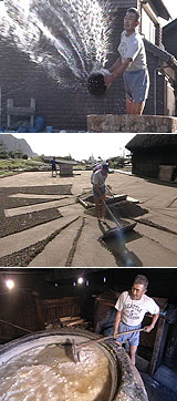 奥能登には日本で唯一、400年の伝統を受け継ぐ塩作りが残っています。400年前の風景そのままに、木の桶や茅葺の小屋…“角花”家の塩です。4月から10月までの晴れた日のみに行われる塩作り。作業は角花さんが天候を読むところからはじまります。海水を汲み上げ、砂の敷き詰められた塩田に撒きます。「塩撒き10年」とも言われる熟練の技は必見です!海水に砂を付着させて天日で乾かします。塩のたくさん残った砂を集め、上に海水をかけて取れる濃い塩水。この濃い塩水を3日間貯めて、鉄釜で炊き上げます。夜通し行われる煮詰め作業。そこにはおいしさの秘伝がありました!