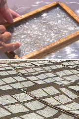 新鮮な生のしらすに手間を加え、全国へしらすを届けてくれる加工の技。サーファーが集まる湘南では、生のしらすを海苔のように干す、究極の手技「たたみいわし」が伝えられています。イ草に干されるところから「たたみいわし」と呼ばれてきました。しらすの芸術品とも呼べる、たたみいわし。一見何気なく行われる作業にも、絶妙な厚みを調整するため、指先に神経が研ぎ澄まされています。