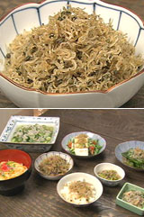 海から遠く離れた京都では、よく乾燥させた「ちりめんじゃこ」が昔から貴重な栄養源として食卓に欠かせませんでした。京都で愛されてきたしらすで作る家庭料理“おばんざい”。「ちりめん山椒」は京都の各家庭で味を持ち、いつも冷蔵庫に入っているそうです。ちりめん山椒とあわせることで、大根の葉も捨てられることなく素朴なおかずへと変身します!“もったいない”と食材を大切にする京都のおばんざい精神にしらすは活きています!