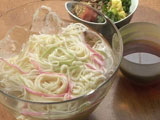 信玄の陣中食だったという「ほうとう」が有名な山梨県。ここでは、毎晩のように「夏ほうとう」と呼ばれる手作りのひやむぎを食べています。汗をかきながら、精魂こめて作るひやむぎは山里のとっておきの御馳走、おふくろの味です。