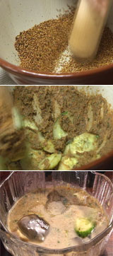 2. ごまをすり鉢ですりつぶす。(すりごまでもよい)