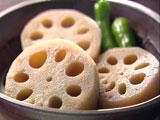 穴の開いた不思議な食べもの「蓮根」。その穴から「先が見通せる」と縁起を担いだ蓮根は、祝いの料理に欠かせません。シャキシャキとした食感は、サラダに煮物にはさみ揚げ、芥子蓮根や酢蓮など独自のおいしさが楽しめます。