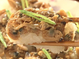 中でも、お祝い事には必ずといっていいほど食べられてきたのが、あさりをふんだんに使った押し寿司です。煮詰めたあさりは酢飯との相性抜群。
