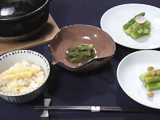 アスパラガスは穂先と胴と根元の部分で楽しみ方が違います。日本料理では、3つの部分が味わえます。穂先のホクホクとした食感をいかし煮浸しに、胴を味噌漬けすれば、うま味が凝縮されます。そして、根元をすりおろしてドレッシングに!?さらに、アスパラガスから出汁が出る!?日本料理の驚きの技が光ります。
