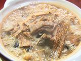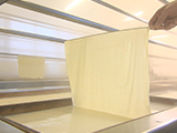 和食のイメージが強いゆばですが、ルーツを辿っていくと、なんと中国から伝わってきたもの。中国では主に乾燥させたゆばを使います。薄いゆばは豆腐皮(トゥフゥピィ)と呼ばれ、包んだり揚げたりして使われ、腐竹(フゥヂュウ)と呼ばれる棒状のゆばは、煮込み料理に使われています。油で揚げてから湯通しして使うなど、発祥の地ならではの伝統の調理法を教えていただきます。
