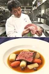 そんな西川さんの育てるジビーフに魅了されたのが銀座フレンチの名店「レカン」高良康之シェフ。現在お店は改装のため閉店中。リニューアルオープンに向け高良シェフは食材探しで全国を回っています。今回、真冬のジビーフの様子を見に牧場を訪問。そこで感じとったイメージを元に東京に戻ったシェフはジビーフで料理を仕立てます。果たしてシェフが作る渾身の一皿とは?