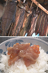 厳しい寒さを乗り越えるため、江戸時代に南部で発明された保存食があります。それが“新巻鮭”。軒先に吊るして寒風にさらす風景は、冬の風物詩ですが、いま、新巻鮭に続けと、様々な加工品が生まれているのです。珍しい鮭の燻製は、まるで生ハムのような味わい。身とイクラを醤油漬けにした“紅葉漬け”をご飯にのせれば、何杯でもおかわりできそう!