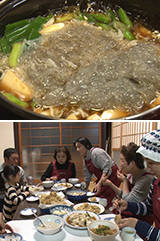 地曳網漁のすぐあとに行われる競りに、加工業者の谷信子さんが買い付けに来ていました。すぐに加工場へ戻ると、すでに沸き立つ大きな釜が。しらすを水洗いして、一気に湯の中へ。茹でること2分で、名物の「釜揚げしらす」のできあがりです。谷さんは、釜揚げしらすを使ったアイデアレシピを、日々考案しています。溶いた卵に、しらすをたっぷり乗せて包みこめば、あっという間にオムレツに。さらに、ハレの日に欠かせない、地元ならではのごちそうとは?