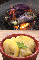 種類豊富なナスの魅力を若い世代にも知ってほしいとデリスタイルの店を開いたのが、シェフの鈴木将さん。長岡市出身で、県外で修行を積んだ後改めて、地元のナスの食文化に惹かれて帰ってきたのです。鈴木さんイチオシの“長岡巾着ナス”は、実が硬く締まった在来種。果実のような食感で、なんとデザートにしても味わえます。他にも、焼きなすに最適なその名も“やきなす”や、梨のような味わいの“梨ナス”などユニークなナスの総菜が楽しめます。