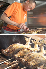 足立さんに鵜匠家ならではの料理を作っていただきます。開きにしたアユを塩と酢で締めれば目にも涼やかな料理に。新鮮な“歯形のアユ”を活かす技に目が離せません。