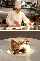 塩焼きの他にも、アユの内臓を塩で1年以上漬け込んだ“うるか”を味わいます。名人の技、そしてアンチョビのような味わいのうるかからヒントを得た秋元さんが新作料理に挑戦。いったい、どんな一皿が生まれるのでしょうか?