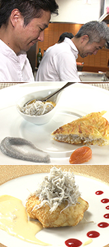 数日後、しらす料理の試作が完成し、しらす漁師の出雲さんと加工業者の相澤さんがお店に招かれました。今回はパティシエも勤める弟の栄司さんもしらすデザートを仕立てます。兄弟合作の「しらす」のコース、どんな料理なのでしょうか。