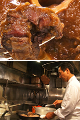 まずは、柔らかいヒレ肉を厚切りにして、塩と粗糖(砂糖)を振りオリーブオイルでソテーします。粗糖を振ることで綺麗な焼き目を付けるだけでなく、肉汁を閉じ込めることができるのです。さらにオーブンで2分、余熱で20分、丁寧に火入れをしたら、特製のデミグラスソースを添えて… “経産牛のステーキ”。続いては骨付きのスネ肉。スジの多いこの部位を柔らかくする為に有馬シェフが取り出したのは、三谷牧場から取り寄せたヨーグルト。これに肉を漬け込み、一晩寝かせます。そして、柔らかくなった身をソテーし、炒めた香味野菜やトマトソースと共に6時間煮込めば…ミラノの郷土料理“オーソブッコ”に。有馬シェフは「経産牛」に関わった人たちに味わってもらいたいと店に招待しました。情熱のバトンで繋いだ牛の試食会。柔らかく、優しい味わいに大変身した「経産牛」…皆さんの反応は!?