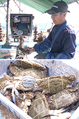 次の舞台は、食の都・大阪。大阪湾に面した岸和田市は、関西でも有数のワタリガニの産地です。豊浦さん夫婦は、底引き網漁師。“ケタ”と呼ばれる爪の付いた網で海底を引っ掻き、砂地に棲むワタリガニを獲ります。岸和田の秋には、ワタリガニが欠かせません。そこには、有名なだんじり祭りと深い関係がありました。