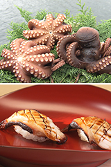 江戸前鮨の名店「銀座 鮨青木」の青木利勝さんは夏が来ると待ちわびている食材があります。それは「タコ」。産卵期を控えたこの時期のタコは歯ごたえが抜群で香り豊か。旨味もいっそう増すのだそう。青木さんは先代の父・義さんから受け継ぐ秘伝の煮汁でじっくりタコを煮込んで極上の握り寿司を仕立てます。寿司や酢の物など和食だけでなく、ソテーやパスタのような洋食にも幅広く使われているタコ。今回は名産地・相模湾を舞台に旬のタコの魅力をたっぷりとお伝えします!!