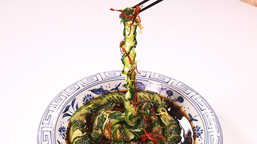 “野菜のアーティスト”と称えられる和食の達人・秋山能久さんが、熱い視線を送る茨城産の「四葉(スーヨー)きゅうり」とは…?野性味あふれる風貌に、パリッとした歯ざわり、際立つ苦みと甘みが醍醐味だと言います。姿かたちを活かした冷菜からデザートまで艶やかな「四葉(スーヨー)きゅうり」料理がテーブルを彩ります。一方、本場中国で修業を重ねた四川料理の達人・井桁良樹さんも「四葉(スーヨー)きゅうり」にほれ込んだ料理人のひとり。中国では夏風邪予防に欠かせないそうで、皮の苦みと果肉の甘さを生かした生搾りジュースを、食事と共に飲むそうです。また、厚さ0.5ミリで皮一枚残して刻む包丁技で生み出す、まるで天に昇る龍の如く伸びる驚きの一皿は圧巻です。