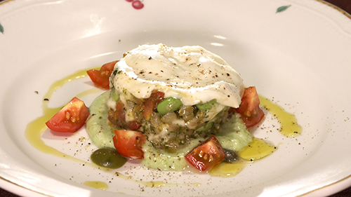 東京・六本木にある人気のイタリアンレストラン「ラ スフォリーナ」。オーナーシェフの川﨑透さんは、イタリアのミシュランガイド掲載店などで4年間修業。当時からストラッキーノをよく食べていたといいます。実は川﨑シェフは、チーズ職人の片岡恵子さんが、ストラッキーノを試作していた3年前からアドバイスを行っており、川場村のストラッキーノ誕生に尽力した人物の一人。そこで今回、ストラッキーノのさらなる魅力を引き出す新作料理を川﨑シェフに作っていただきました!合わせるのは、川場村でとれた夏野菜。そして、香り高いバターやトリュフを使った新食感のひと皿も登場します。もちもちの食感と酸味を活かす、新作ストラッキーノ料理は必見です!