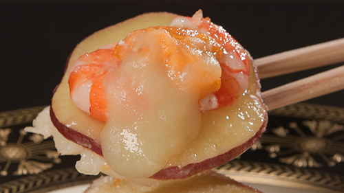 東京・目黒には、独創的なさつまいも料理が評判の割烹があります。店主の鈴木好次さんがさつまいもに合わせる食材は、ウニやホタテ等の海の幸!それをミルフィーユ状に重ねて、さつまいもの葛餡をかければ…芋と魚介が相乗効果で至福の味わいです。さらに、さつまいもが月見椀に変身!ほろほろと優しい吸いものは絶品です。そんな鈴木さんが使っているさつまいもは、茨城県・鉾田市の“シルクスイート”。