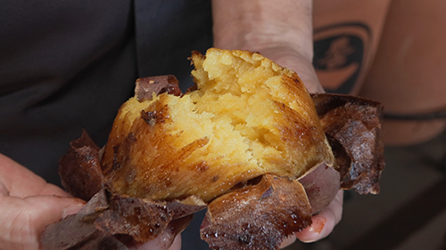 茨城県・鉾田市で、シルクスイートを生産しているのは、“鹿吉”3代目の吉田喜一さんと弟の吉田行宏さん。シルクスイートは絹のような滑らかさと、ねっとりとした食感が持ち味。「甘いというより旨い」ものを作りたいという吉田兄弟。繊細なため、収穫後は“キュアリング”という蒸気で蒸して皮の下にコルク層を増やす方法で3ヶ月ほど熟成させるそうです。今年の出来を料理で確かめるため、タコと合わせたかき揚げや、さつまいもの豚汁に。「芋と合わせることでより旨みが増す」と高評価でした。