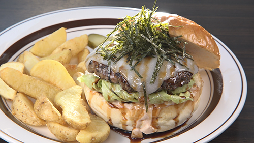 パティを焼いて、スライス餅を乗せ、特製てりやきソースをかければ…餅バーガー!餅の食感と、ジューシーな肉で新感覚。