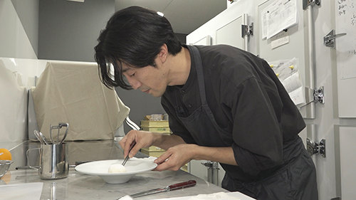 個人の餅消費量 全国第1位(統計局調べ)の福井へ。福井市の老舗和菓子店ではフランスで修業した17代目・昆布智成さんが正月に向けて新作に取り組んでいます。伸した餅でチーズのクリーム、バラのアイスを包み、水ようかん、柿のソースに乗せます。