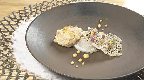 まず、赤江シェフは福井県名産の蕎麦の実のリゾットに、伸した餅を被せ、こんがり焼き上げたら、最後に冬の名物セイコガニを使って、一体どんな料理に?