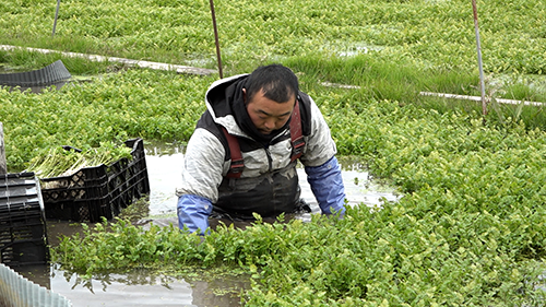20年程前、稼業を継ぎ、せり農家となった三浦さん。当時は、農薬などに頼る慣行農法でしたが納得のいく味のせりを育てたいと、農業書を読み、専門家のアドバイスを受けて探求。試行錯誤の末、有機農法に辿り着きました。しかし、思わぬ厄介ものが…それは外来種のアメリカザリガニ。せっかく育ったせりの茎を切って食べてしまうのです。