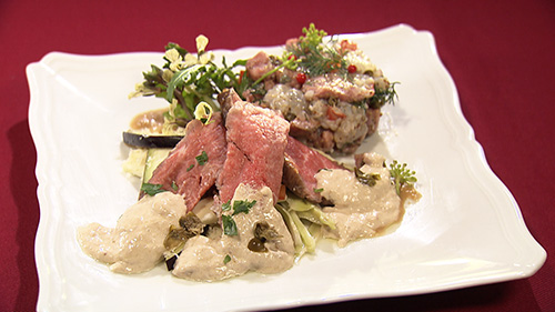 葉山牛を絶妙な火入れで焼き上げた渾身の一皿を仕立てます。