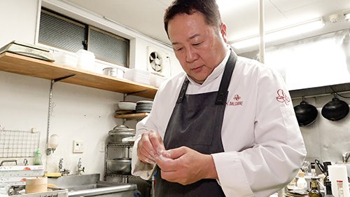 高崎市のレストラン「ファン・ダルクオーレ」で、中華とイタリアンを融合した独創的な料理を手掛ける星野弘明シェフ。