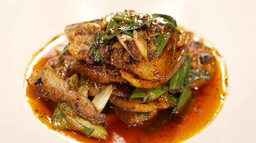 「全く別物の豚肉」という菰田さんが仕立てるのは、脂の甘みを活かした回鍋肉。