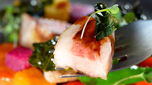 さらに帯広市内では、マンガリッツァ豚の赤みの美味しさを引き出すフレンチ料理も!こだわりの火入れで仕上げた赤みの旨みは絶品です!