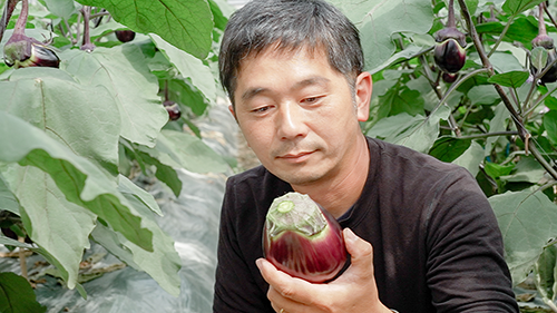 貝塚市で、泉州水なすを育てるなす農家の3代目・北野忠清さん。
