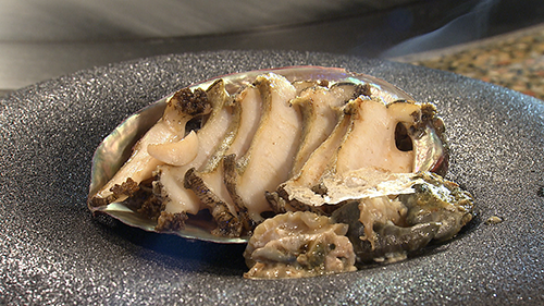 初めて出会った相模湾の黒アワビに感激し、新作料理を作ろうと考えました。