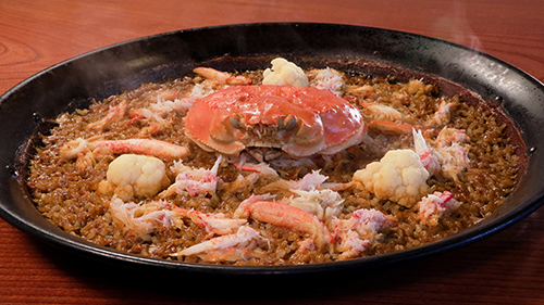 若者に人気のスペイン料理店「マノカミーノ」では、カニ殻からとった旨みたっぷりの出汁とカニミソで作る一品が圧巻。