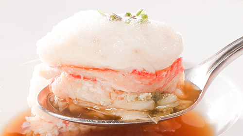 新作自然薯フレンチでは、若狭の海のご馳走・ズワイガニを合わせます。