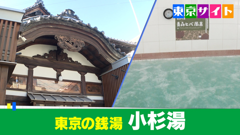 元々質素な造りだった銭湯ですが、関東大震災後、その復興にあたり、「人々の元気が出るように」と「唐破風(からはふ)様式」の豪華な「宮造り」にしたところ評判になりました。その頃から、東京の銭湯建築で宮造りが流行したとされています。杉並区にある、1933年創業の「小杉湯」も、宮造りの銭湯で、カーブした「唐破風屋根」が特徴です。脱衣所の天井は、寺院などに見られる「格(ごう)天井」で、貴重な屋久杉が使われています。現在も創業当時の姿を維持し、2020年には国の登録有形文化財になりました。浴室には、銭湯絵師の中島盛夫さんによる富士山の絵が描かれています。風呂は温度を変えて用意されていて、約43℃の「あつ湯」は、入浴剤や天然素材を使ったお湯を月に約10種類楽しめます。ミルクの香料などを入れた41℃の「ミルク風呂」は、幅広い世代に人気だそうです。42℃のジェットバスもあります。