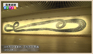森美術館で開催中の『N・S・ハルシャ展:チャーミングな旅』。1969年生まれのインド出身の現代アーティスト、N・S・ハルシャの個展です。初期の作品『私たちは来て、私たちは食べ、私たちは眠る』には、人や動物が繰り返し描かれる彼のアートの特徴が見られ、過去最大スケールの『ふたたび生まれ、ふたたび死ぬ』は、一筆で描いたように見えてじつはち密な作品。また『空を見つめる人びと』は、体験できるインスタレーションです。