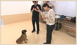 東京都や関東近県の動物愛護センターなどから引き取った犬に人間と暮らすためのしつけを教えながら、新しい飼い主を探す活動をしている団体「家庭犬しつけ協会」。「おでん」(オス・6才)は元の飼い主が高齢で世話ができなくなりこちらに預けられました。保護された犬にはまず、他の犬とのコミュニケーションのとりかたを教えます。犬同士で遊ぶことでストレス発散になり、散歩のときに他の犬を見てもほえなくなるそうです。そして、ボランティアスタッフが行うしつけ訓練で、新しい飼い主とうまく生活できるようしつけを覚えこませます。