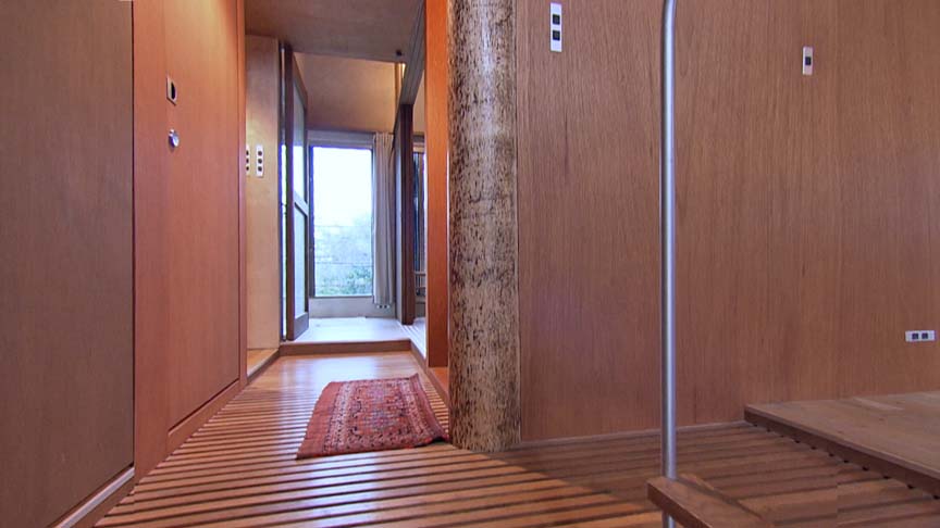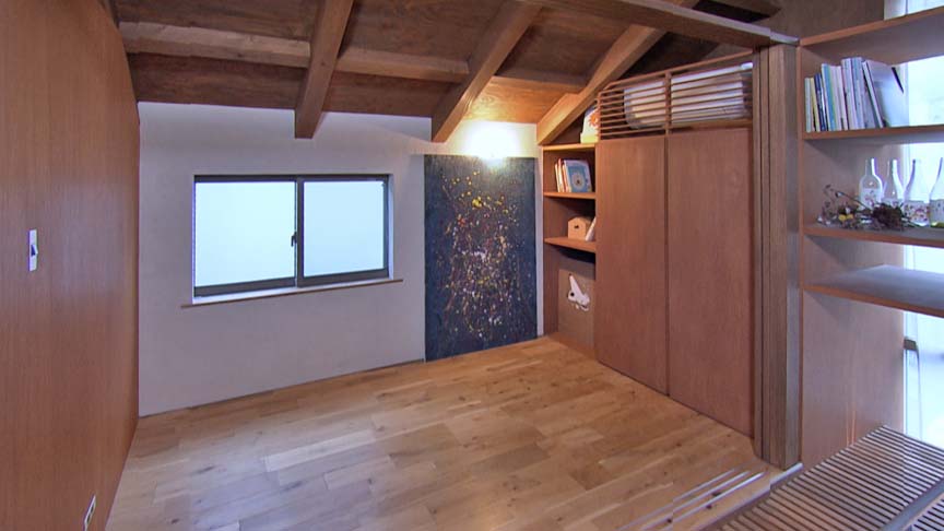 2間の北西側にある予備室は、通常時は開放的していますが、画像右手に収納された戸を引き出すことで、独立した個室になります。