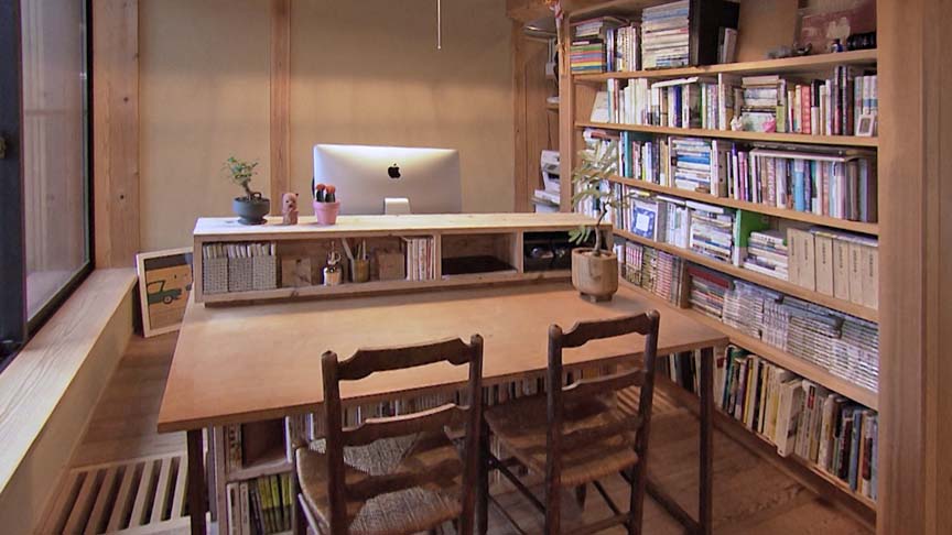 主に建築家である建主の仕事場ですが、時には子供たちの勉強する場にもなるそう。こちらも床の一部がルーバー状になっています。