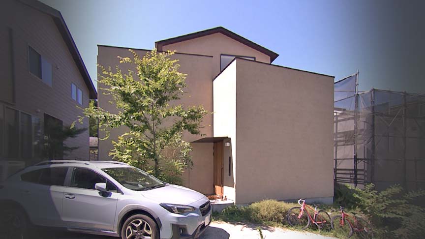 周囲に隣家があるにもかかわらず、その存在を感じさせない窓の配置。また床の段差を利用して大容量の収納を設けています。