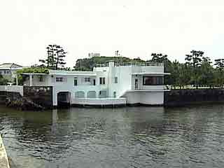 北原さんのお宅には船が家に着けれるボートハウスがありました。なんと海が家の中まで入っているんです。ここから見るとまるで大海原が自分の庭のよう。現在は、建築基準法で海岸からセットバックしなければならないため、日本で唯一のボートハウスです。 |