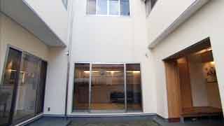 | 中庭を抱く「コ」の字形の建物です。全ての部屋に光と風を取り込む、とても機能的な間取りです。もちろん機能だけでなく、中庭の持つ“余白”が落ち着いた雰囲気も生み出しています。 四季に応じて使い分けられる多様な引き戸。調湿機能のある漆喰や珪藻土といった自然素材。ドイツご出身のランゲさんに、日本の風土に馴染む家とはどんなものなのか、改めて教えられました。「日本再発見」の建物です。 |
