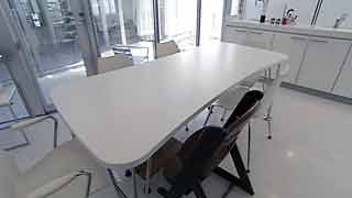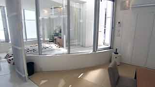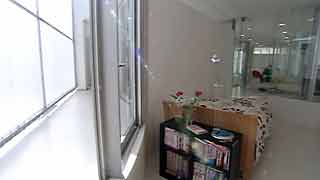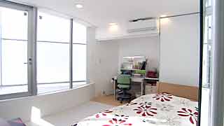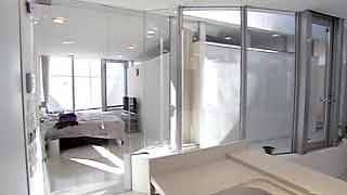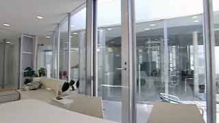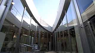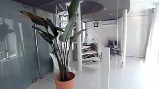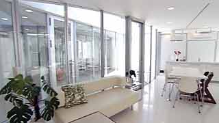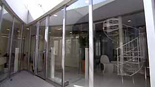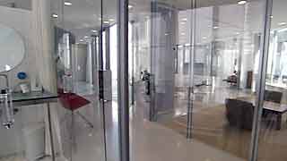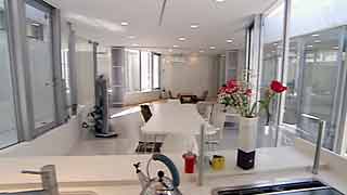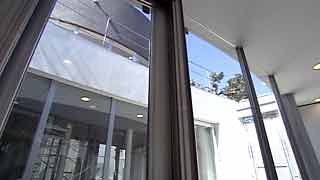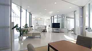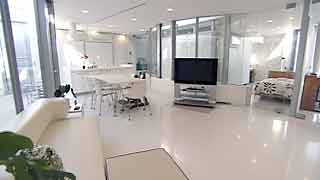 | 外観はいたってシンプルですが、一歩内部に足を踏み入れると想像もしていなかった豊かな空間が広がります。既成概念に捕われない新しい発想から生まれた建物です。 部屋の仕切りはほとんどが透明ガラスで、パブリックスペースから個室までを見通せます。建物のどの位置にいても建築面積分の空間が味わえるわけです。 これまで数多くの建物にお邪魔していますが、またしても驚かされてしまいました。建築の可能性に限界は無いのだなと、改めて感じました。 |