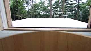 一見シンプル。しかし、深い部分まで考え抜かれた建物です。まず、テラスからの眺め。そして、大きな窓からの眺め。気持ちが良いですね、360°周囲の深い緑を味わえます。この場所にあるからこそ成立する、土地を知り尽くしたプランだと思います。 |