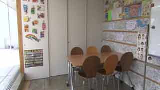 リビングダイニングと一体の英会話教室用スペース。普段は引き戸を開け放ってリビングとして使用します。 |