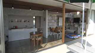 基本は木造ですが、東西に鉄筋コンクリートの壁を立てることで、南面の大開口を実現しました。床面はモルタル仕上げで、土間感覚で楽しめます。 |