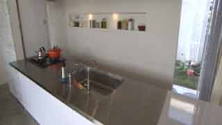 カフェを思わせる横長のカウンターキッチン。中は意外と広く、動線もシンプルなので動きやすそうです。 |