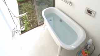 やはり、立地の良さを生かした開放的なバスルーム。日曜大工が得意なご主人が、近々デッキテラスを製作予定。 |