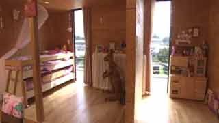 2.5畳ずつの“ユニット”が並んだような個室フロア。その時々の使い方に応じて仕切ったり開いたり、まさに“成長する”家です。 |